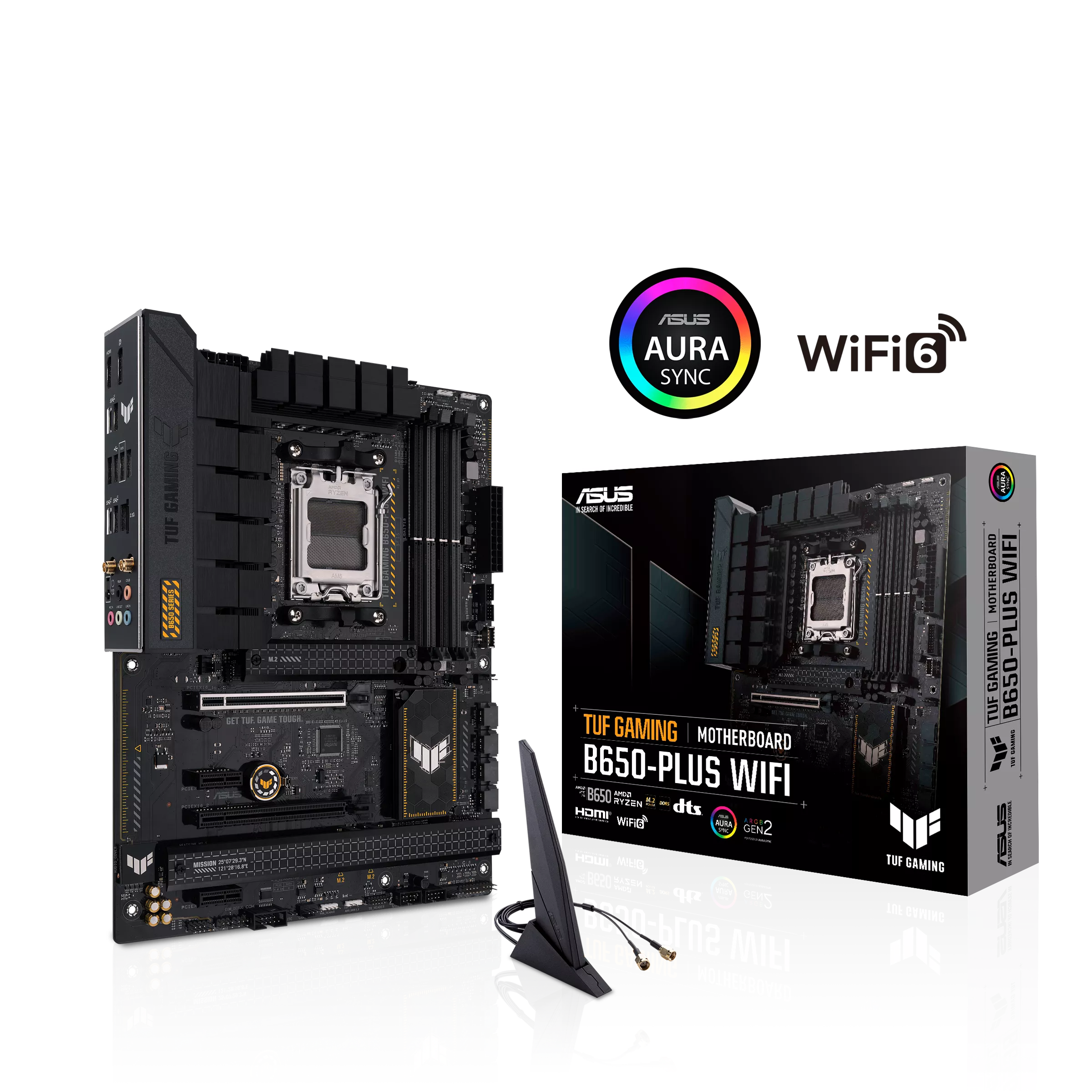 Upgrade your gaming rig with the ASUS TUF GAMING B650-PLUS WIFI, engineered for the latest AMD Ryzen™ 9000, 8000, and 7000 Series processors. Designed for long-term durability, high performance, and extensive connectivity, this ATX motherboard is the ideal choice for gamers and creators building on the AM5 platform in Iraq.